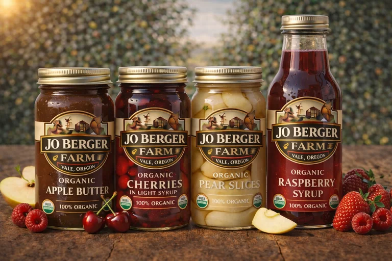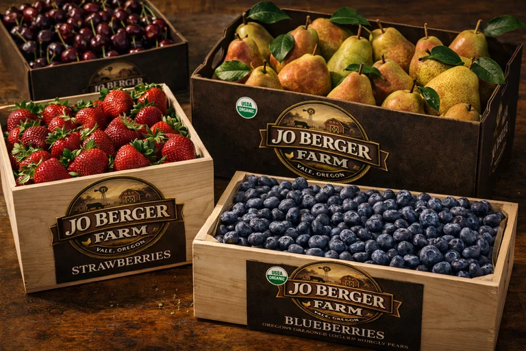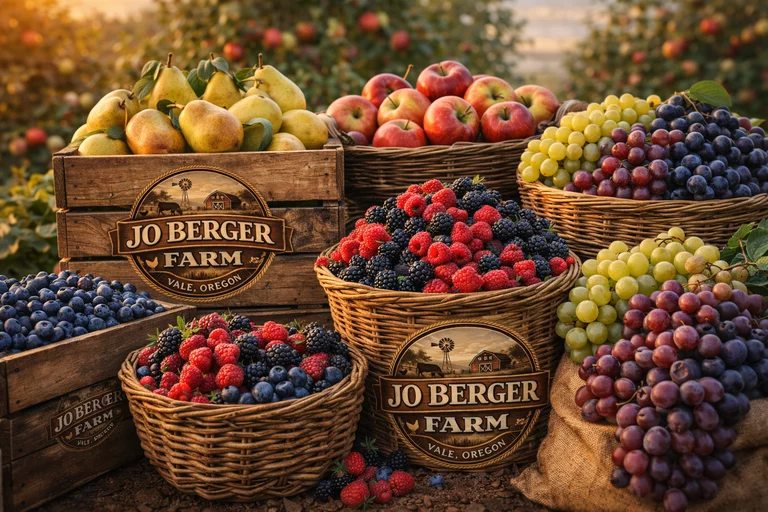 Die Jo Berger Farm erzeugt eine Auswahl klassischer Obstsorten, die auf eigenen Flächen in Oregon angebaut und sorgfältig geerntet werden. Dazu zählen unter anderem Äpfel, Birnen, Trauben sowie verschiedene Beerenarten.